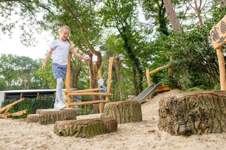 Auf dem Spielplatz bei der Terrasse können Kinder nach Herzenslust spielen, in sicherer Entfernung von der Straße. Rutschen, im Kletternetz herumkraxeln oder über den großen Baum balancieren, Sand hochtakeln – Superspaß garantiert! Auch in der Umgebung lockt das Abenteuer: In den mächtigen Sanddünen der Rheezerbelten lässt es sich herrlich herumtollen. Diese 15 bis 20 Meter hohen Verwehungen können auch mit einer spannenden GPS-Tour entdeckt werden.