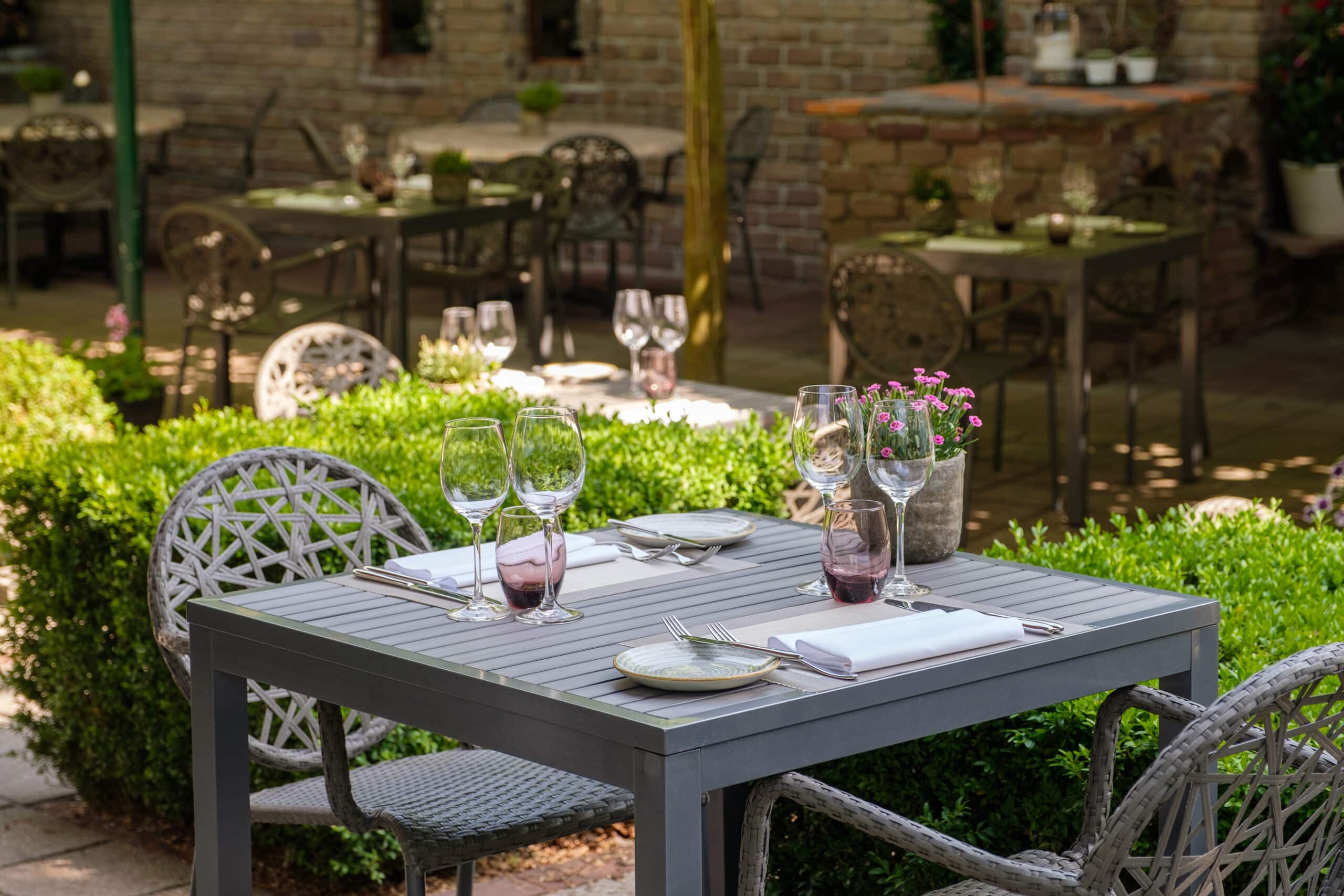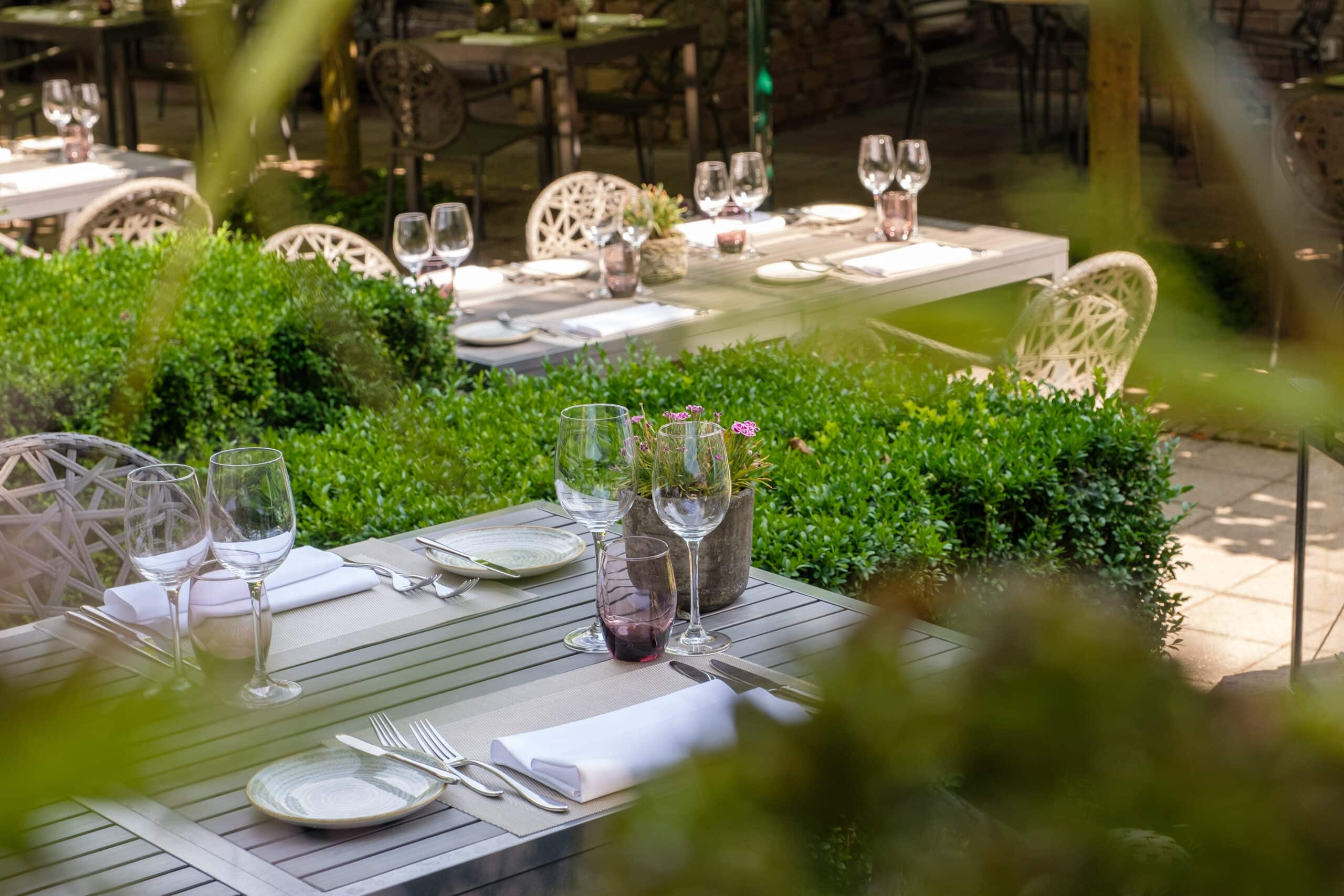 Zodra het weer het toelaat, kunt u heerlijk ontspannen op het beschutte lounge terras bij de kruidentuin. Niet alleen biedt de kruidentuin geurige en smaakvolle kruiden voor de keukenbrigade, maar ook verschillende variaties aan groenten worden verwerkt in de gerechten op uw bord.